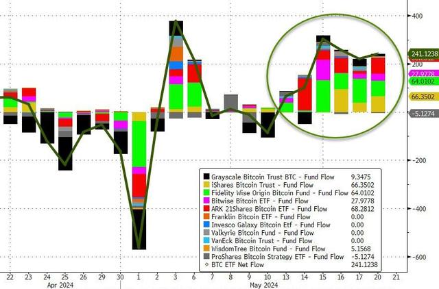 隔夜比特币一度飙升至72000美元附近,随后回吐涨幅收盘时接近持平。但值得注意的是,这已经是比特币ETF连续第六日出现资金净流入。