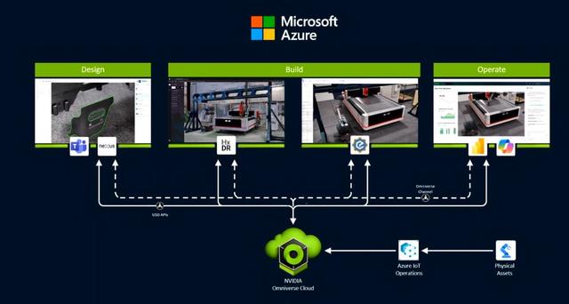 基于英伟达的Omniverse(全宇宙)虚拟现实和仿真平台以及微软Azure云服务可以开发先进的数字孪生工具(digital twin),方便重工业的工程师和开发人员于精确模拟物理世界的3D虚拟环境中,在一间工厂正式动工奠基之前便完成设计、测试、验证、优化生产线和自动化等多项流程。